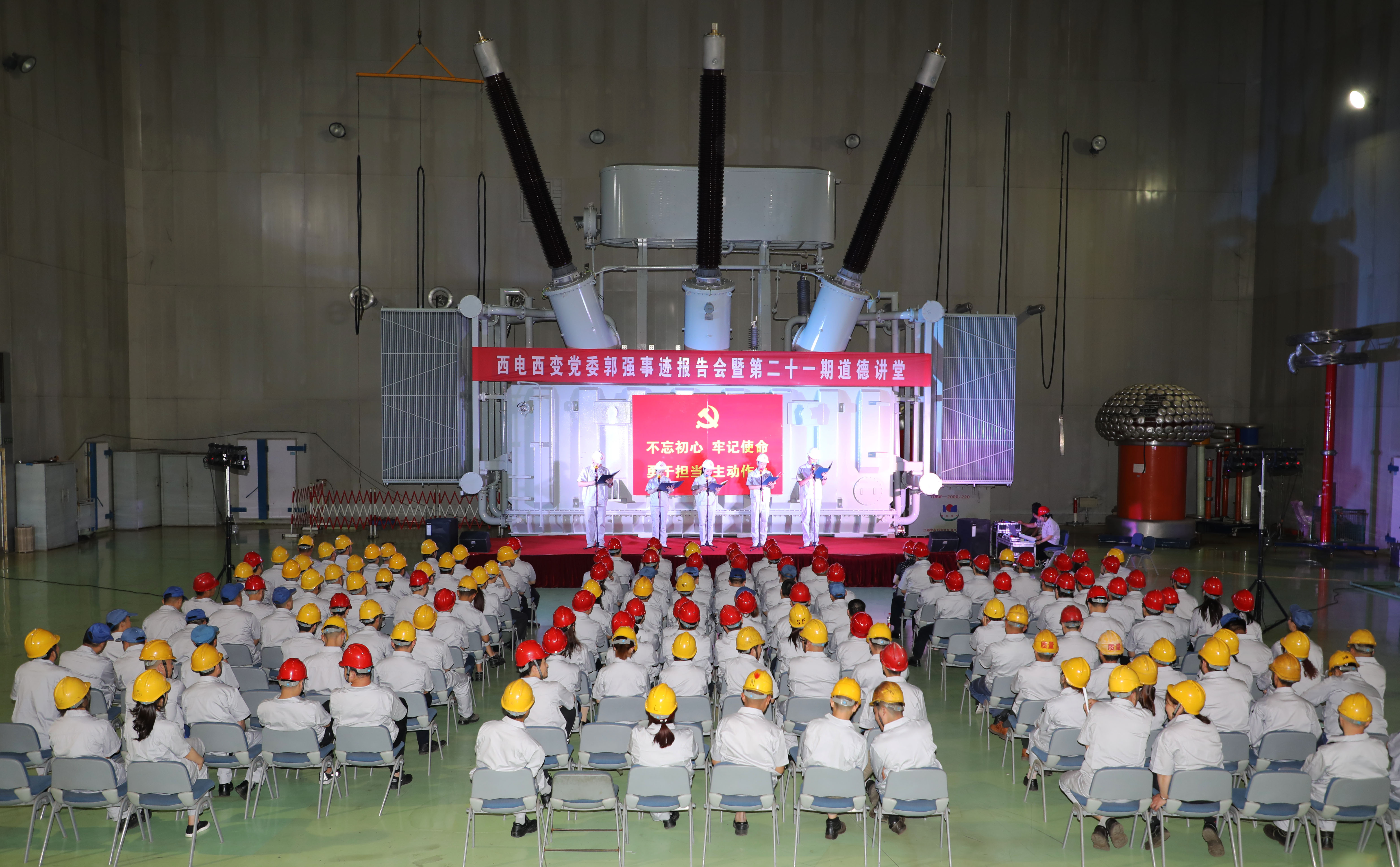 5月28日,西電西變黨委郭強事跡報告會暨第二十一期道德講堂走進西電濟變變壓器試驗大廳,本次在西電濟變舉辦的郭強事跡報告會,是繼西電西變、西電常變、西高院、西電光電纜之后的第五站。