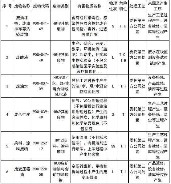 依據《中華人民共和國固體廢物污染環境防治法》第二十九條規定:“產生、收集、貯存、運輸、利用、處置固體廢物的單位,應當依法及時公開固體廢物污染環境防治信息,主動接受社會監督。”結合我司實際情況,現將2022年危險廢物污染環境防治信息公開如下: