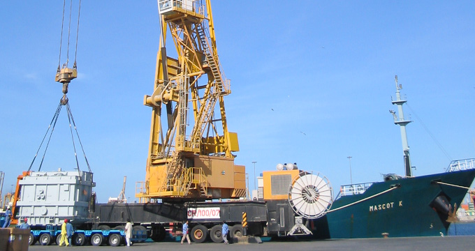 出口阿聯酋迪拜鋁業的的33kV31.5MVA變流變壓器正在碼頭御裝